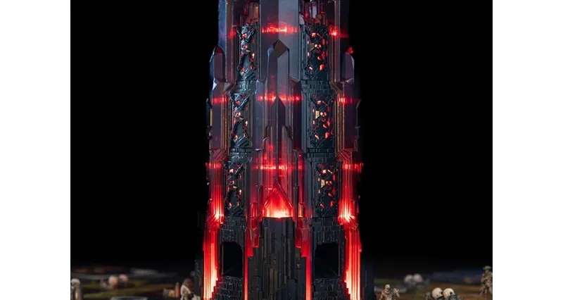 Jak už napovídá samotný název, dominantou celé deskové hry je temná věž. Tento monument však není jen ozdobou nebo pasivním účastníkem jako ve Frostpunku, jedná se o mechanickou, pohyblivou, svítící i zvukem obdařenou skulpturu. Díky Bluetooth propojení skrze aplikaci se jedná o skutečnou součást celé hry. Herně funguje tak, že se do ní vhazují lebky, které pak mohou vypadnout na jednu ze čtyř světových stran, tedy na území jednoho ze čtyř hráčských království. Druhou možností je, že se zaseknou uvnitř a stanou se budoucí hrozbou, dokud je jiná lebka nebo mechanický pohyb věže neuvolní ven.